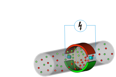 Magnetisch induktive Durchflussmesser werden zur Durchflussmessung elektrisch leitfähiger Flüssigkeiten eingesetzt. Gemäß dem Faradayschen Induktionsgesetz wird in einem Leiter, der sich in einem Magnetfeld bewegt, eine Spannung induziert. Das elektrische leitfähige Messmedium entspricht dem bewegten Leiter. Die durch das Messmedium induzierte Spannung ist proportional zur Durchflussgeschwindigkeit und somit ein Maß für den Volumendurchsatz. Voraussetzung ist eine minimale elektrische Leitfähigkeit des strömenden Mediums. Die induzierte Spannung wird über zwei Messelektroden, die in leitendem Kontakt zum Messmedium stehen, einem Messverstärker zugeführt. Über den definierten Rohrleitungsdurchmesser wird der Volumenstrom errechnet. Die Messung ist unabhängig vom Medium und dessen stofflichen Eigenschaften wie Dichte, Viskosität und Temperatur.
